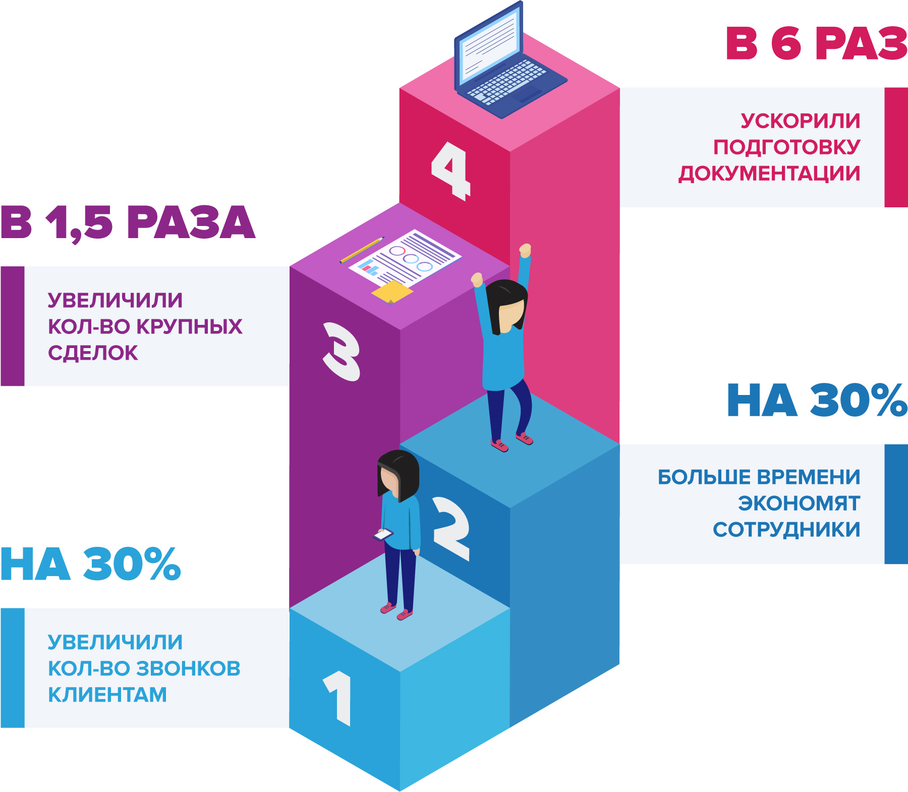 Благодаря S2 мы стали в 6 раз быстрее оформлять документы, благодаря чему освободилось время на другие задачи. Так, менеджеры стали звонить клиентам на 30% больше. Все это привело к тому, что мы стали заключать в 1,5 раза больше крупных сделок!
