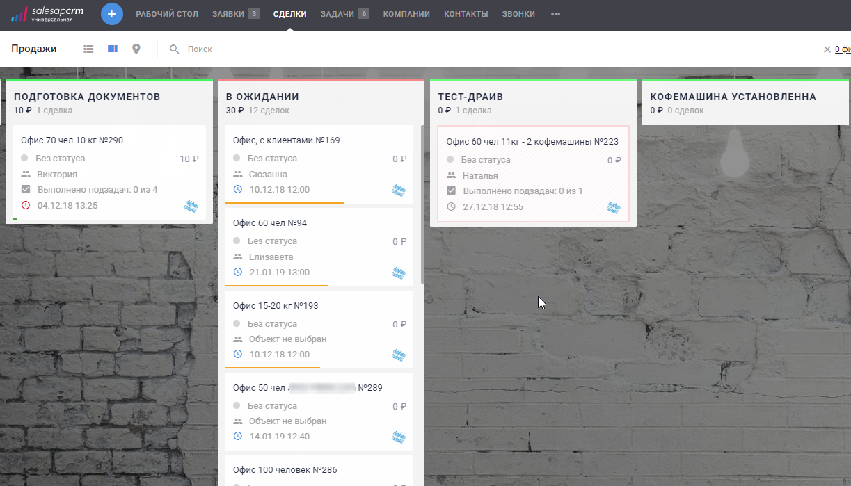 Мы стали заключать больше сделок с крупными клиентами. Если раньше у нас было 3-5 новых установок кофемашин в месяц, сейчас этот показатель вырос до 5-8. Да, процесс переговоров по-прежнему может затягиваться на месяц и больше, но благодаря доске задач мы не забываем позвонить, напомнить о себе, и в итоге доводим клиента до покупки.