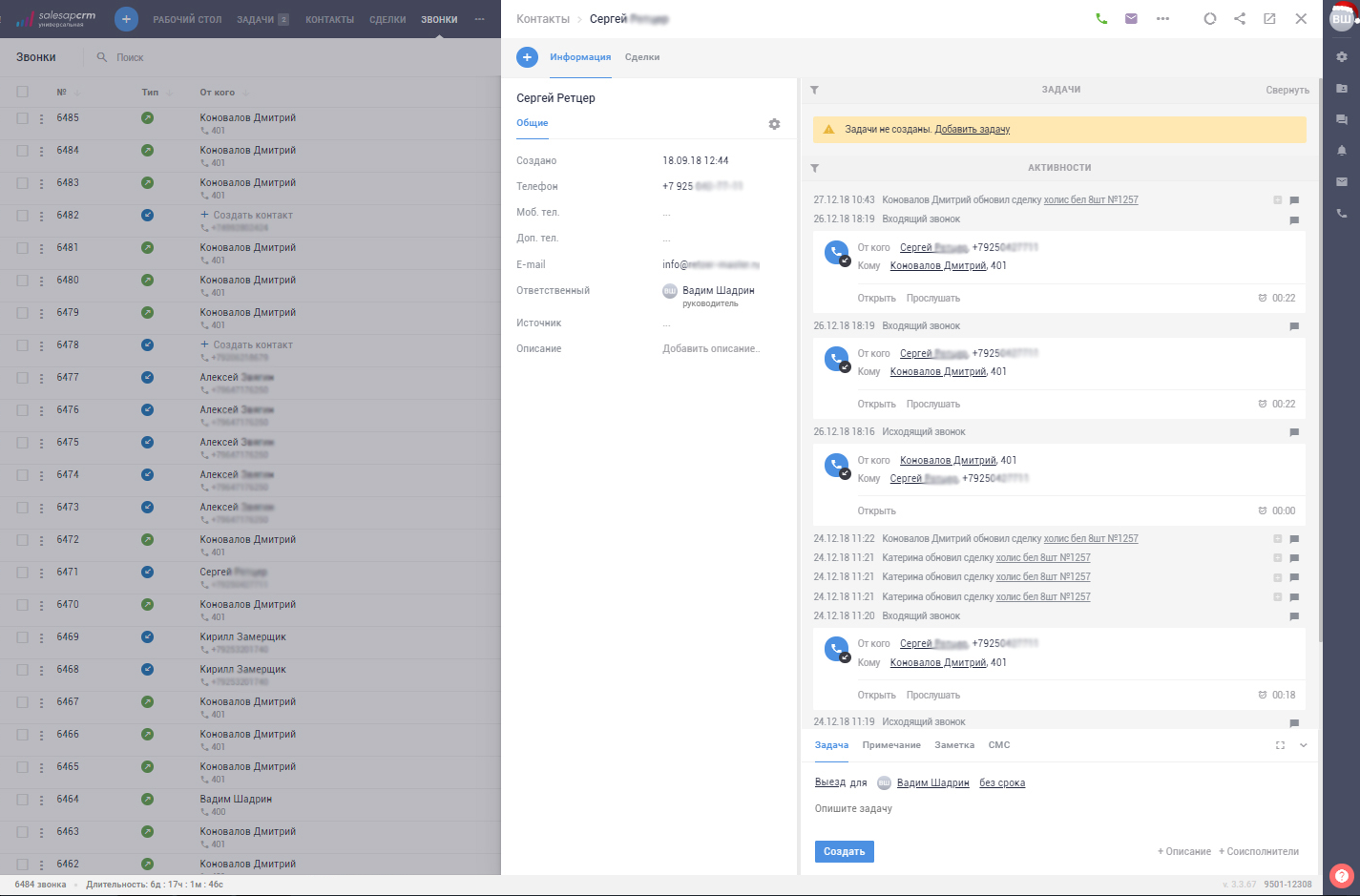 Недавно появилась новая функция: добавить в CRM контакт прямо из карточки звонка. Нажимаем «плюсик», и клиент появляется в базе вместе с телефоном. Благодаря этому мы экономим еще минут 5 на каждом заказе.