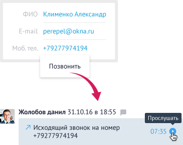 S2 сохранит все записи разговоров и покажет отчеты по количеству звонков каждого менеджера. Руководитель в любой момент сможет оценить качество работы сотрудников, вычислить самых продуктивных и самых ленивых менеджеров.
