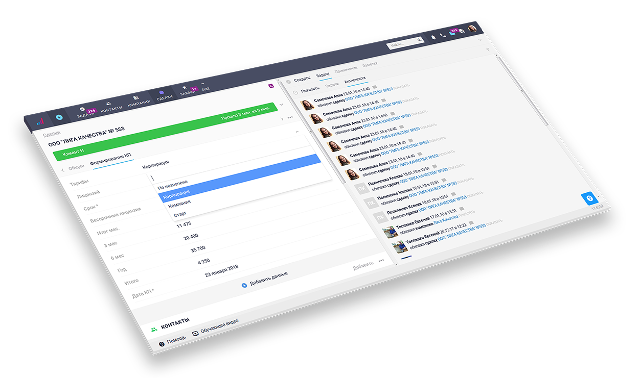 Один раз настройте необходимые поля и формулы, чтобы быстро вычислять сумму сделки, даже если она зависит от множества факторов: типа материалов, срочности работы или программы лояльности.